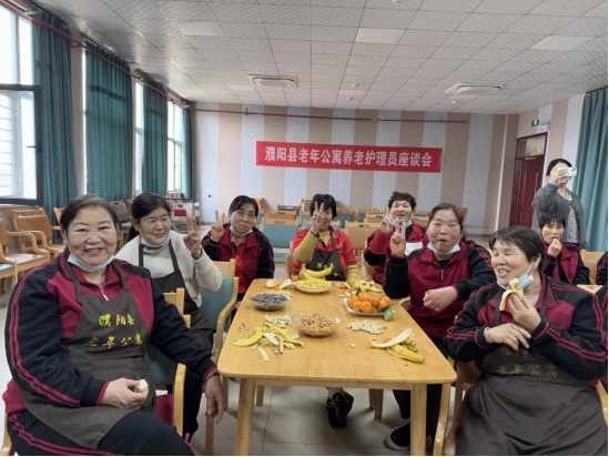 2024年12月11日下午濮阳县老年公寓举办护理员座谈会让护理员们分享在日常护理工作中的成功经验,如何与不同性格的长者们建立良好关系,像对待性格内向、抗拒护理的长者,护理员可能通过耐心陪伴、轻声细语交流取得长者们信任的经验。